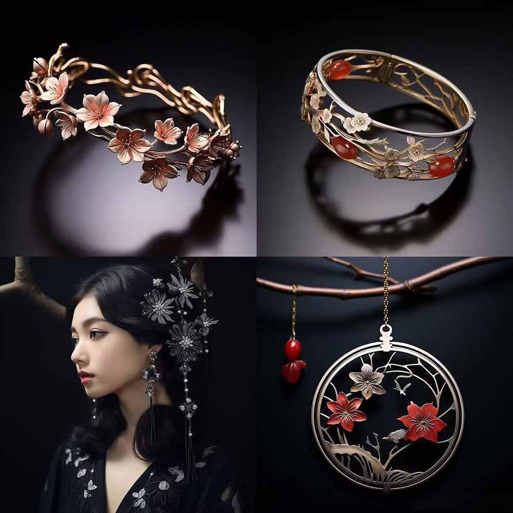 > 460+专业Midjourney珠宝摄影AI提示词+成效果图,戒指/项链/耳环/手链/宝石/及奢侈配饰等全品类